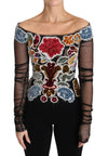 Dolce & Gabbana Black Floral Ricamo Top T-shirt Blouse