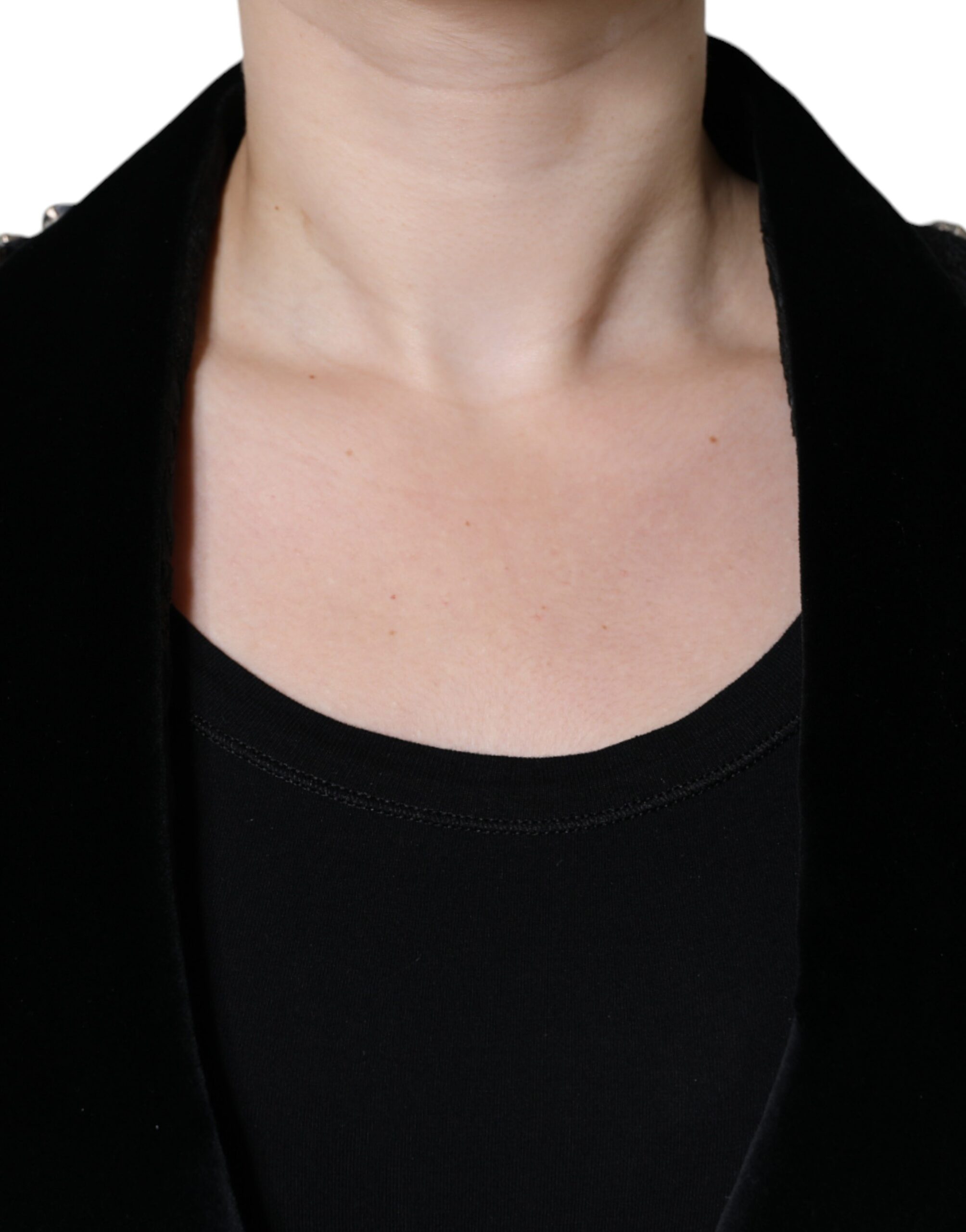 Dolce & Gabbana Black Jacquard Crystal Floral Jacket Blazer