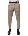 Dolce & Gabbana Beige Black Striped Cotton Slim Fit Trousers Pants
