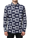 Dolce & Gabbana Blue Crown Logo Print Slim Fit Cotton Shirt