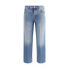 Gucci’s Straight Jeans feature a straight cut and a classic five-pocket design. They feature a naplak label with the Gucci Rosso Ancora logo, belt loops and a front pleat that adds a refined touch. The closure is secured by a button and zipper, combining functionality and style in a versatile and contemporary garment.