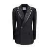 The Wool Blazer by Sacai is a sophisticated piece that blends classic elegance and stylistic experimentation. Made of fine wool, it features a double-breasted cut with front buttons that emphasize its tailored structure. On the front, two welt pockets with flaps add functionality and symmetry to the design. Particularly distinctive is the double layer of peaked lapels, an iconic element that gives the blazer a strong visual identity and contemporary appeal. A perfect garment for those seeking sophistication with an innovative twist.