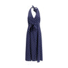The silk Dress by P.A.R.O.S.H. expresses an airy femininity through a fluid silhouette enhanced by a polka-dot pattern. The V-neckline flatters the figure with ease, while the tie details add a delicate accent that follows the movement, shaping a refined and timeless piece.