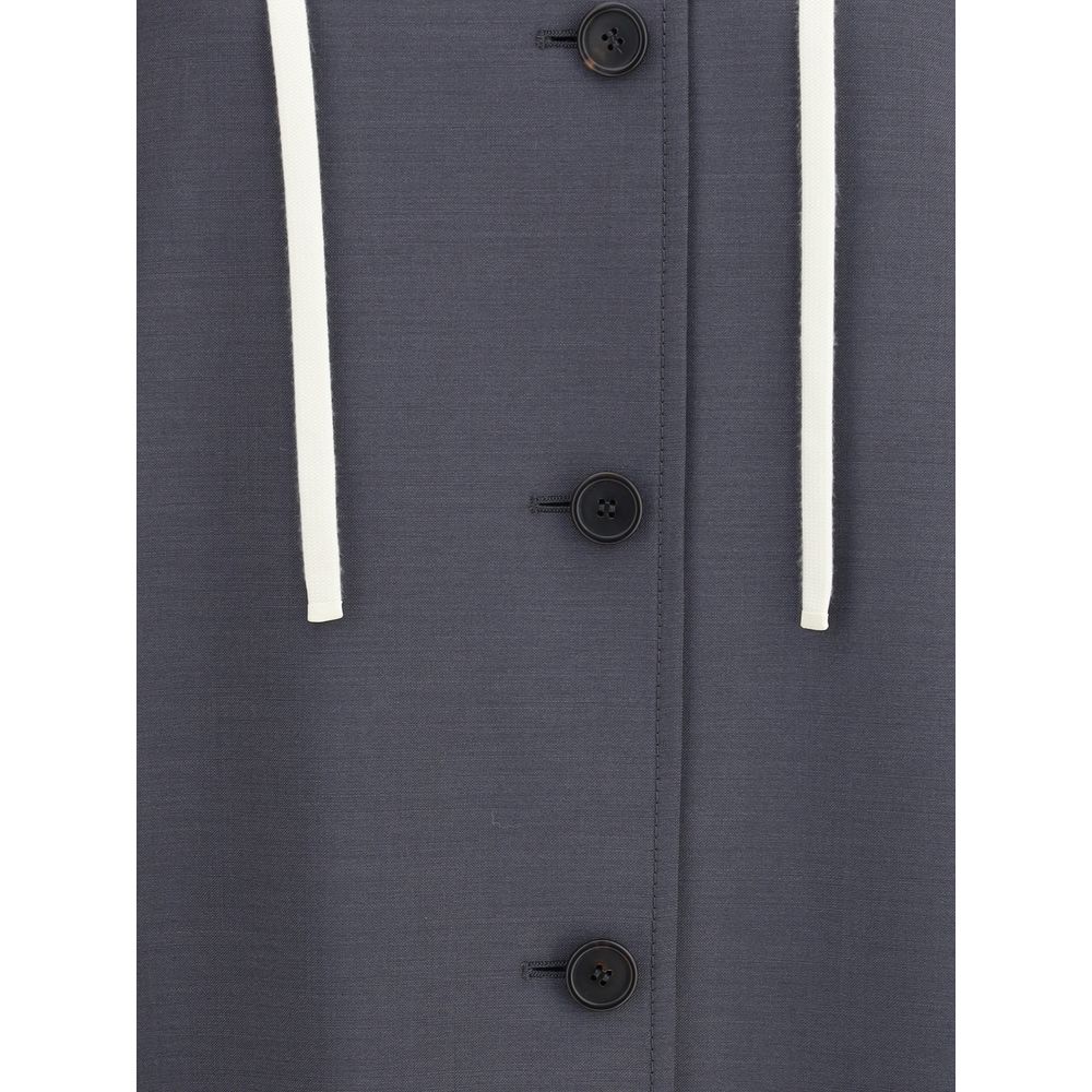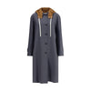 Miu Miu’s hooded long Coat blends a tailored silhouette with contrasting elements, such as the sleeves and detachable hood made of technical fabric. Featuring buttoned cuffs and a practical drawstring in the hood, it has a front button closure and welt pockets. A versatile garment that combines classic elegance with contemporary functional details.