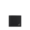 The leather Wallet by Prada features an elegant and functional billfold design. The front features the iconic triangular enameled plaque with the brand’s logo, while the interior offers card slots, a billfold compartment, and the brand’s monogram stamped in a press-stamped design, a refined detail that underscores the brand’s quality and style.