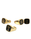 Gorgeous brand new with tags 100% Authentic Dolce & Gabbana set of four signet rings in gold-tone brass. Black enamel finish and mismatched lettering at faces.