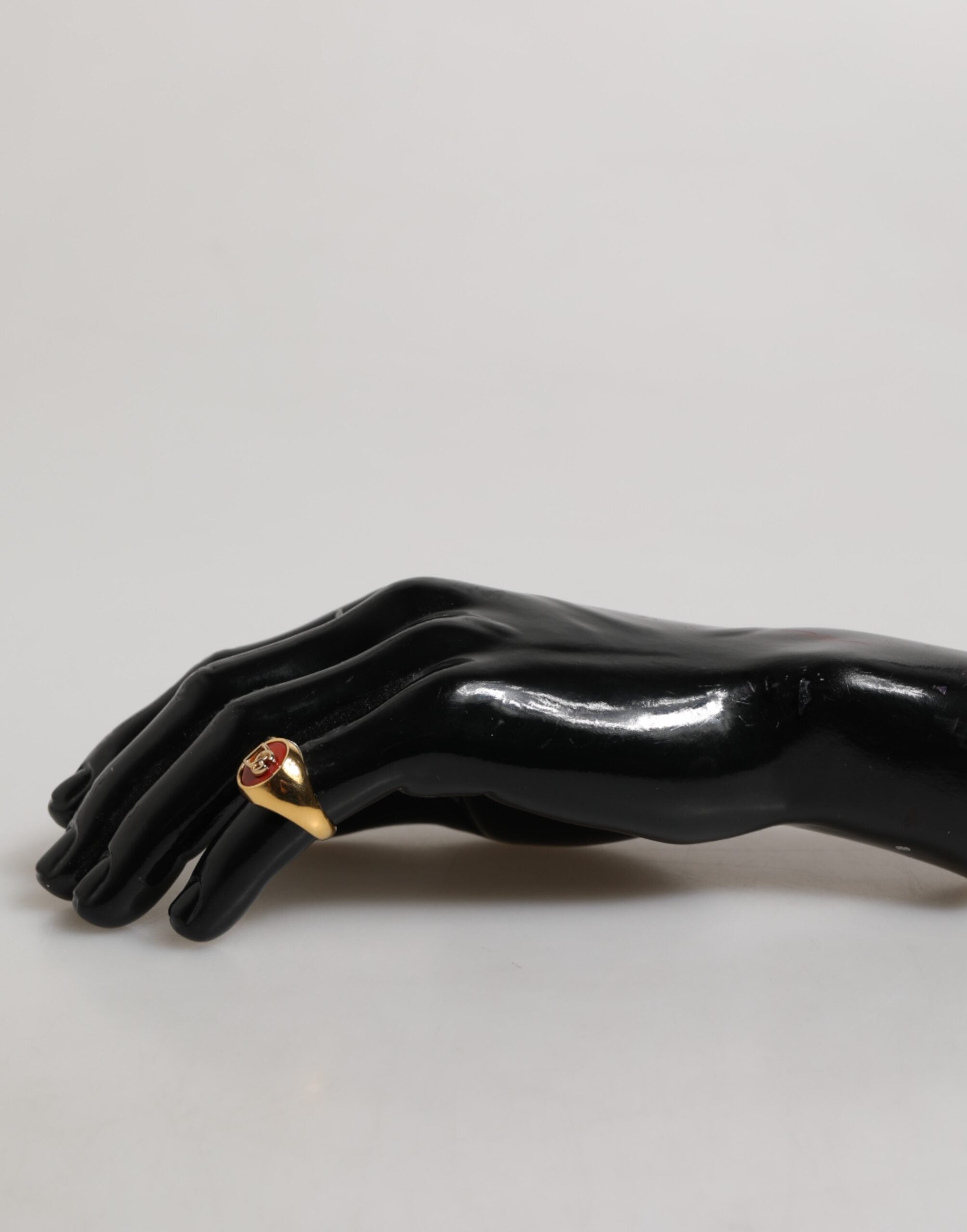 Dolce & Gabbana Gold Tone Real Brass Red DG Logo Men Ring