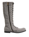 Dolce & Gabbana Gray Shearling Lace Up Knee High Boots Shoes