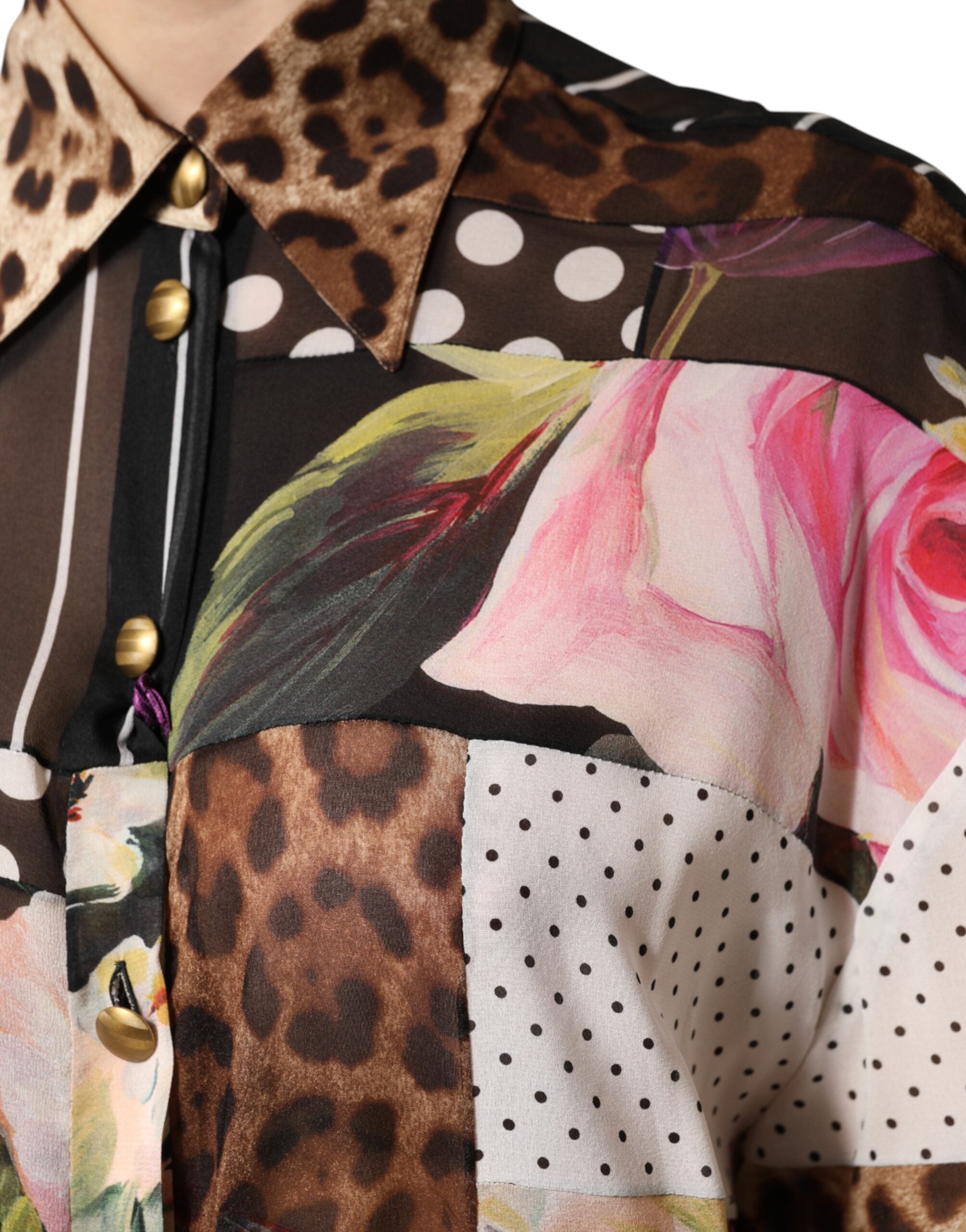 Dolce & Gabbana Multicolor Patchwork Silk CollaredBlouse Top