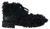 Dolce & Gabbana Black Leather Combat Shearling Boots Shoes