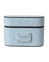 Dolce & Gabbana Light Blue Leather Metal Logo Plaque Airpods Case