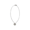 Necklace by MM6 stands out for its minimal and elegant design, featuring a round plaque embellished with a delicate glitter detail. The hook-and-eye closure provides security and practicality, while the engraved logo on the back adds a touch of discreet sophistication, making this jewelry a versatile and sophisticated accessory.
