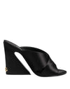 Gorgeous brand new, 100% Authentic DOLCE & GABBANA sandals slip-on style with an open toe and a high heel feature a black satin construction with crossover panels and a distinctive geometrical heel.