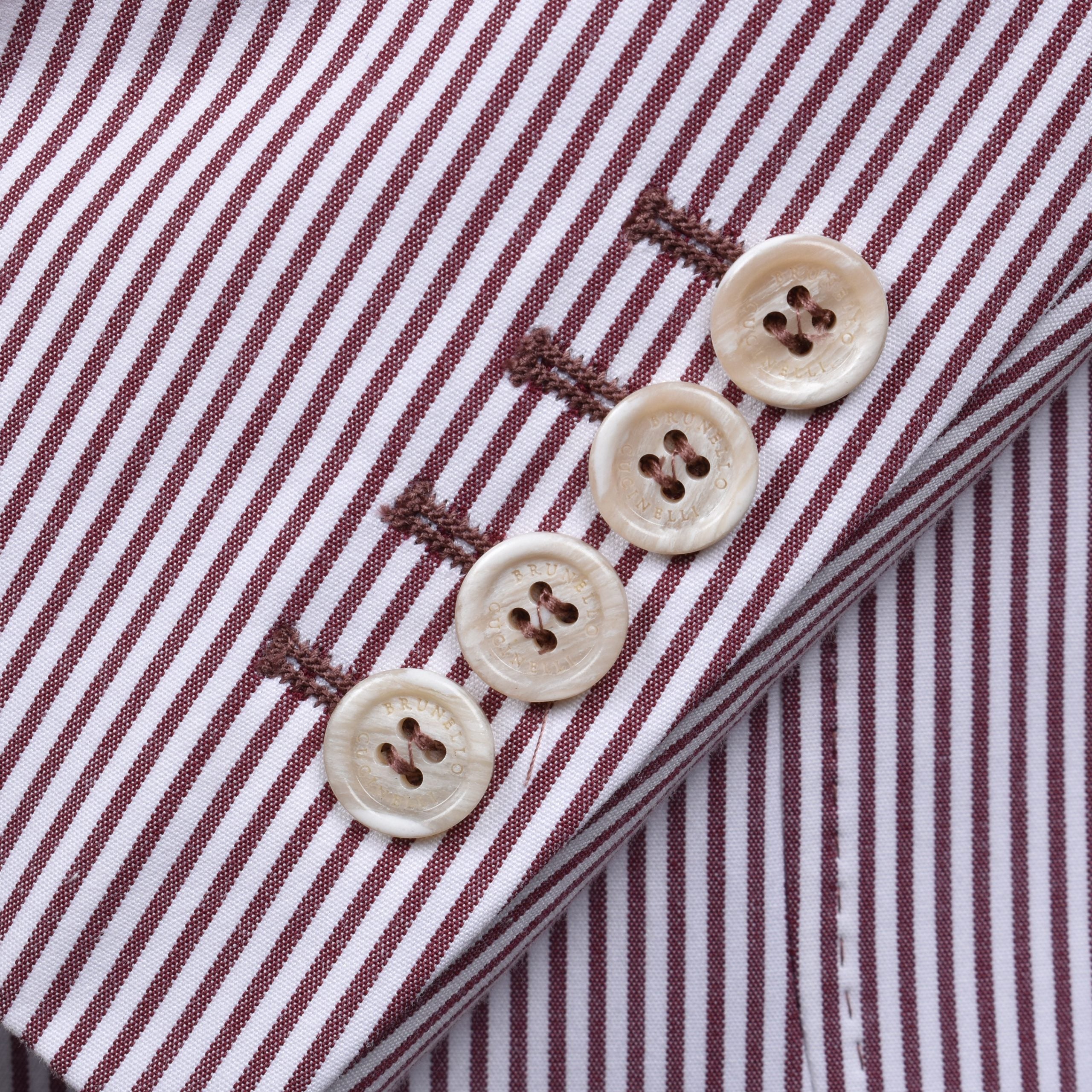 Elevate your wardrobe with the unparalleled sophistication of BRUNELLO CUCINELLI. This men’s deconstructed jacket, woven with care in Italy, merges comfort with high-end style, featuring a striking burgundy and white color scheme. Its luxurious blend of cotton and elastane ensures both a perfect fit and enduring quality. New with tags, this piece is a testament to impeccable craftsmanship and contemporary elegance — a true collector’s item for the fashion-forward gentleman.