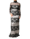 Dolce & Gabbana Black White Lace Silk Blend MaxiSheath Dress