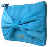 Twinset Blue Tafta Silk Large Bow Zipper Clutch Women Borse Logo Bag