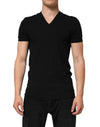 Dolce & Gabbana Black Cotton Slim Fit Men V-Neck Shirt T-shirt