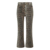 Cotton Pants by Ganni featuring five-pocket flare style, all-over animal print design, contrasting zipper and logo button closure, belt loops, tone-on-tone embossed monogram patch applied to back pocket.