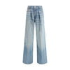 Wide-leg cotton Jeans by Haikure feature a medium waist and a classic five-pocket design. They feature a front zipper and button closure, while a logoed leather patch, a distinctive detail of the brand, is applied on the back. A garment with a contemporary style, ideal for a casual and trendy look.