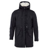 Moose Knuckles Blue Parka Jacket with Drawstring. Front zip and metal hook fastening, two side welt pockets and two top pockets, adjustable drawstring waist. Adjustable hood, metal logo patch on the sleeve. Removable sheep fur lining. Composition: 74% Nylon, 26% Cotton