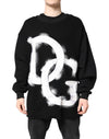 Dolce & Gabbana Black Cotton Logo Print Men Pullover Sweater