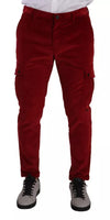 Dolce & Gabbana Red Corduroy Cotton Cargo Skinny Pants