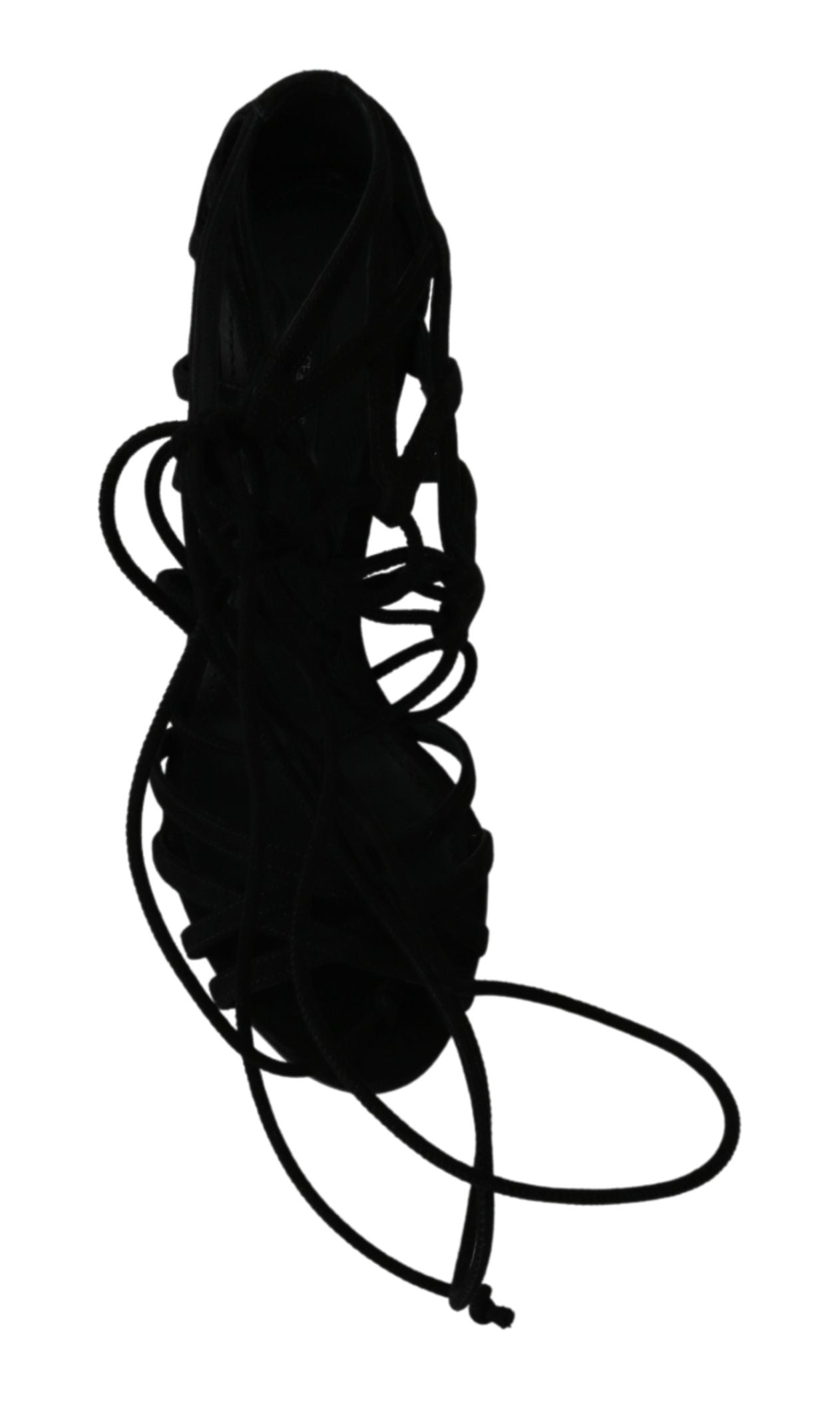 Dolce & Gabbana Black Suede Strap Stilettos Shoes Sandals