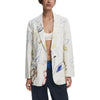 The Desigual BLAZER_ARTY 25WWEW21 women’s blazer is a unique piece that combines elegance and creativity. Crafted from a high-quality blend of 97% cotton and 3% elastane, this blazer offers a comfortable fit with slight stretch, perfect for all-day wear. The oversized design with classic lapels stands out thanks to its original artistic decorations featuring floral and abstract motifs, adding a contemporary and distinctive touch to your look. Ideal for both casual and formal occasions, this Desigual blazer brings personality and style to any woman’s outfit.