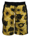 Dsquared² Yellow Black Printed Nylon Beachwear Shorts Swimwear