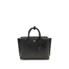 The Milla Handbag by MCM features a trapezoidal silhouette that gently flares upward. Equipped with two handles and a shoulder strap, it can be worn by hand, on the forearm or over the shoulder with great versatility. Gold details, including protective feet, exclusive closure and central “Mode Creation Munich” logo, add elegance, while discreet stitching and contrasting pink piping define a refined, minimalist design.