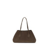 The Alger Shoulder Bag by The Row stands out for its geometric design and essential aesthetic typical of the house. Made of shiny leather, it features a clean structure with a flat base, tubular handles and refined hand-stitching that enhance its craftsmanship. A sophisticated and timeless accessory, perfect to complete everyday looks with elegance.