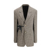 The single-breasted Vichy Jacket by Balenciaga blends classic tailoring with contemporary experimentation. Crafted from lyocell, it stands out for its wrap tailored construction, introducing a refined yet unconventional silhouette. The classic lapels, chest welt pocket, and two front flap pockets reference traditional tailoring, while the side tie detail adds a modern, functional edge. Finished with long sleeves with buttoned cuffs and a back vent, this jacket delivers a fluid, sophisticated fit with a distinct Balenciaga attitude.