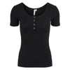 Classic black buttoned T shirt for women Short sleeves and round neckline Made of 95% cotton and 5% elastane for comfort Versatile and timeless design Machine washable at 30° 95% cotton -5% elastane Size on Tag: XL