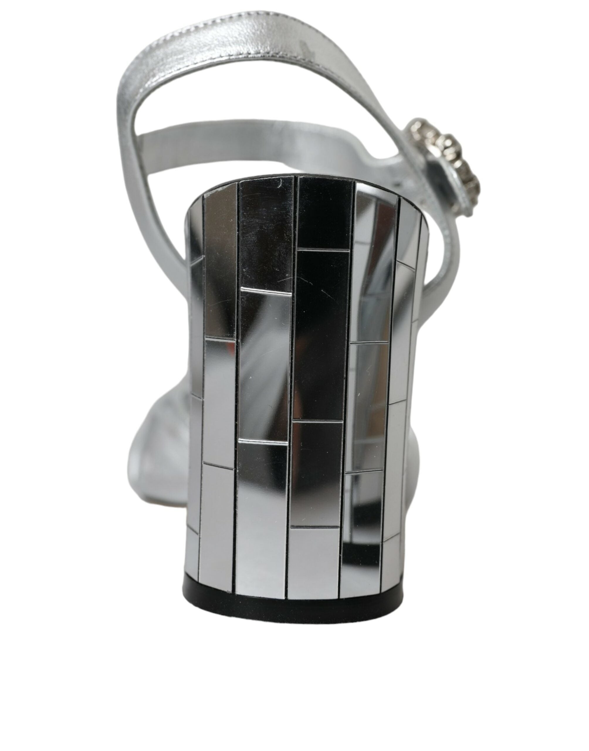 Dolce & Gabbana Silver Lambskin Leather Heels Sandals Shoes