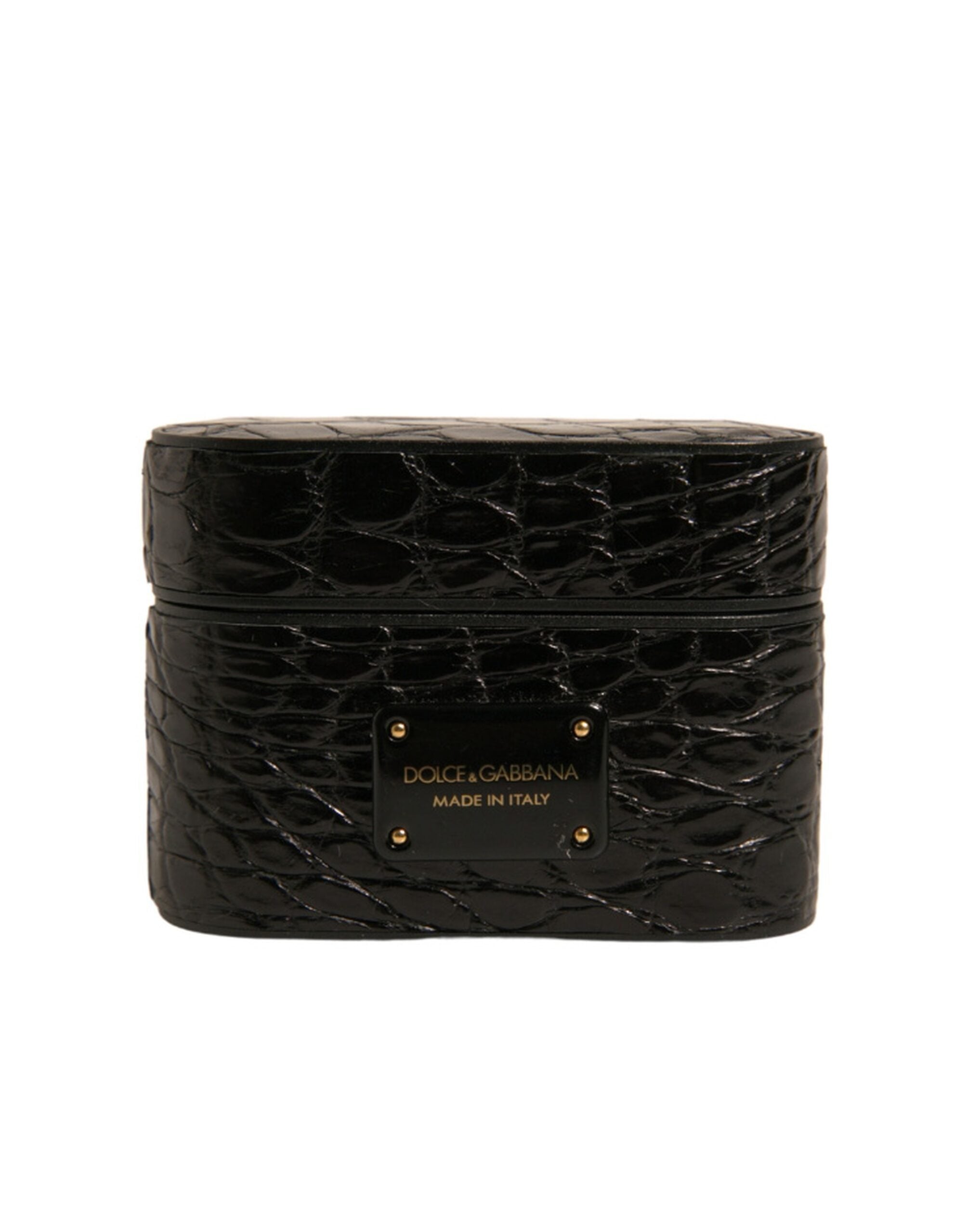 Dolce & Gabbana Black Leather Devotion Heart Strap Airpod Case