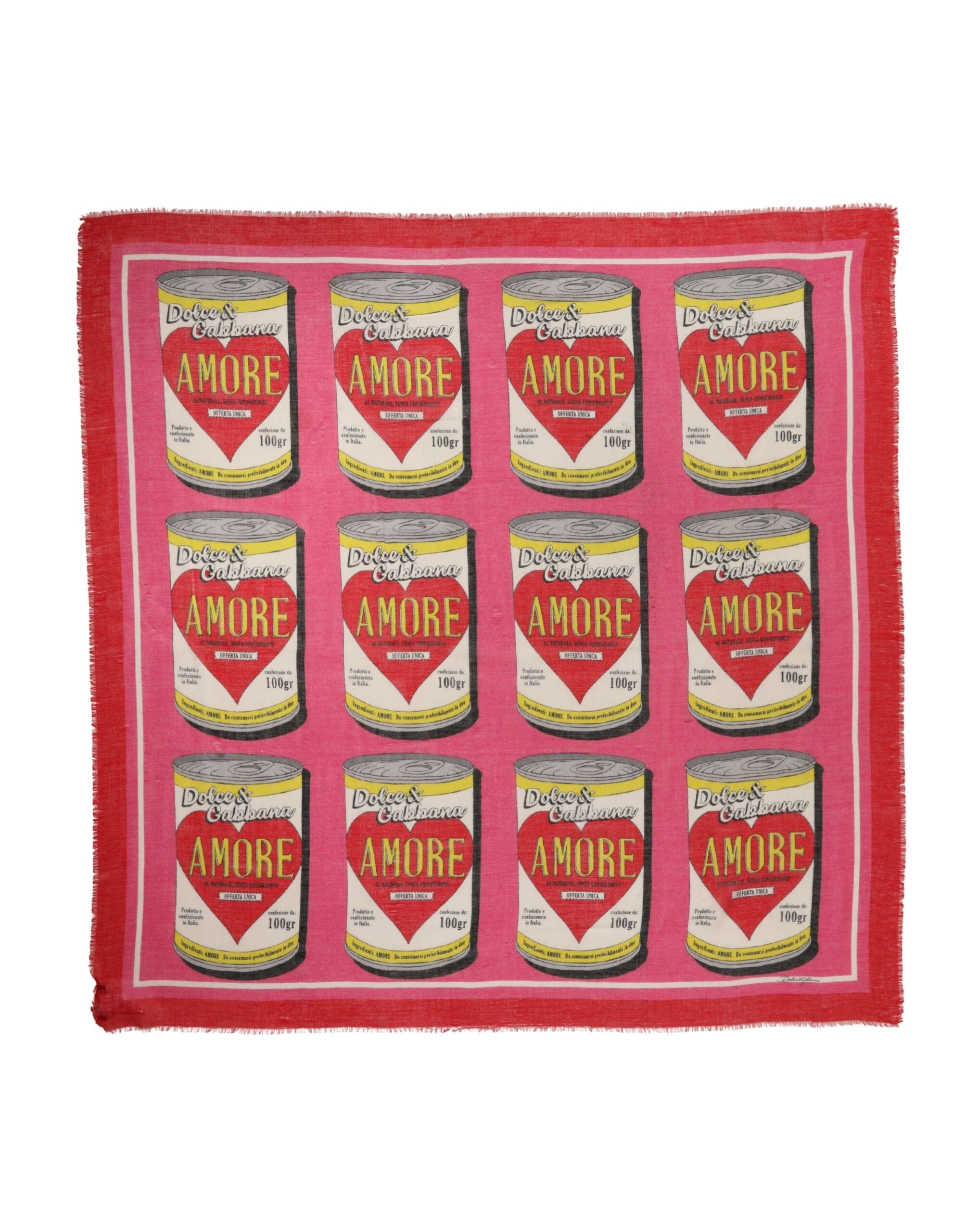 Dolce & Gabbana Pink DG Amore Print Neck Square Shawl 140cm x 140cm Scarf