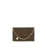 The Falabella chain wallet Bag by Stella McCartney is crafted from vegan snake-effect fabric in warm brown tones and features the signature ruthenium chain with engraved charm. The design includes a snap-button closure and a functional interior with a main compartment and an open pocket, making it ideal both as a compact shoulder bag and as a wallet thanks to the chain strap. Finished with a dustbag, the Falabella by Stella McCartney blends modern style and sustainable values in an elegant and versatile accessory.