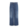 The denim Pants by Brunello Cucinelli deliver refined casual elegance through precise construction and distinctive detailing. Featuring a wide-leg design, the silhouette is enhanced by contrast stitching that highlights the structure of the piece. A front zip and button closure is paired with a classic five-pocket layout, while decorative accents and a leather label on the back waist add a subtle and recognizable signature.