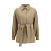 The virgin wool Jacket-shirt by Max Mara delivers understated elegance with a contemporary sensibility. Crafted from pure virgin wool, it features a pointed collar and a front snap-button closure for a clean, practical look. The matching belt with belt loops allows the silhouette to be defined, while side welt pockets add subtle functionality. A versatile piece, perfect for refined yet effortless styling.