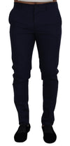 Dolce & Gabbana Blue Linen Cotton Slim Trousers Chinos Pants