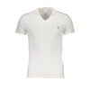 Step into the world of effortless style with the signature Guess Jeans super slim short-sleeved t-shirt. Designed with a sharp “V” neckline, this immaculate white tee boasts a tasteful logo application that embodies the brand’s iconic appeal. Crafted from a blend of 95% cotton and 5% elastane, it promises both comfort and a flattering fit that accentuates your silhouette. Perfect for the bold and fashionable individual ready to make a trendy statement.