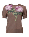 Dolce & Gabbana Brown Lily Embellished Round Neck Blouse Top