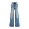 The cotton denim flare Jeans by Gucci reinterpret a timeless wardrobe staple through a stone-washed finish that adds texture and a subtly worn-in feel. The mid-rise flare cut elongates the silhouette, while the five-pocket construction and button-and-zip closure preserve a classic balance. The leather-detailed horsebit and the Gucci naplak label sign the piece with a distinctive and iconic touch.