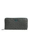 Dolce & Gabbana Green Ostrich Logo Plaque Zip Around Continental Wallet