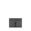 Black Calfskin Card Holder by Saint Laurent, card slot on both sides, black embossed logo on front.