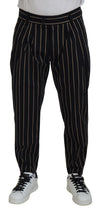 Dolce & Gabbana Black Beige Striped Cotton Stretch Pants