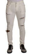 Dolce & Gabbana White Tattered Skinny Cotton Men Denim Jeans