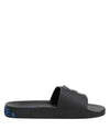 Dolce & Gabbana Black Leather Slides Flats Beachwear Shoes