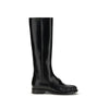 The smooth leather Boots by Prada featuring a clean, contemporary silhouette. They come with a round toe, a structured vamp and a convenient side zip closure for easy wear. The exterior is embellished with a laminated printed logo, while an additional printed logo appears on the inside. A refined yet versatile boot designed to elevate everyday looks with the brand’s signature craftsmanship.