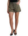 Dolce & Gabbana Green Embellished Cotton High Waist Hot Pants Shorts
